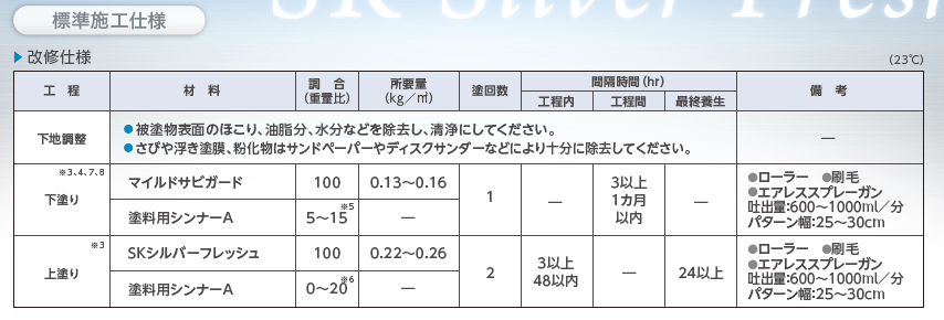 塗り重ねる間隔は3時間以上48時間以内です。(23℃)。