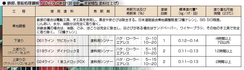 付着性が良く、亜鉛メッキ鋼板やアルミなどにも塗装することができます。 - 運用部位